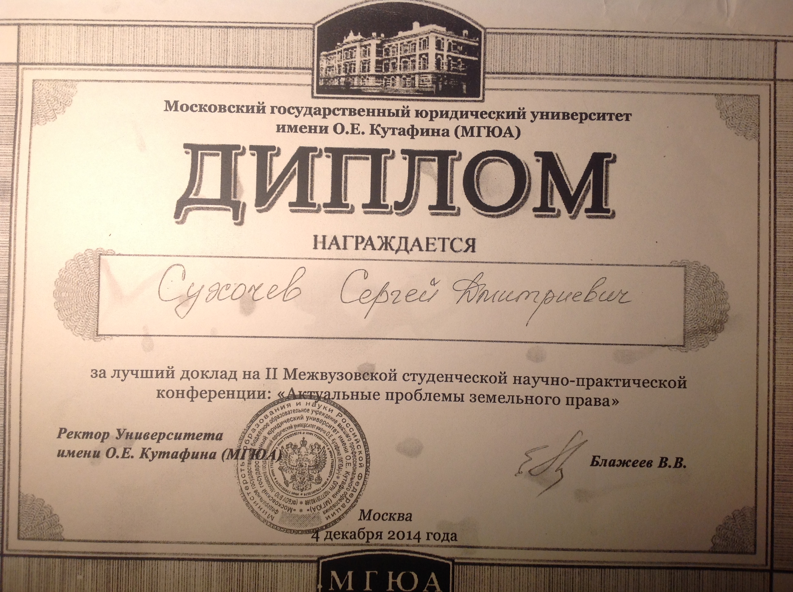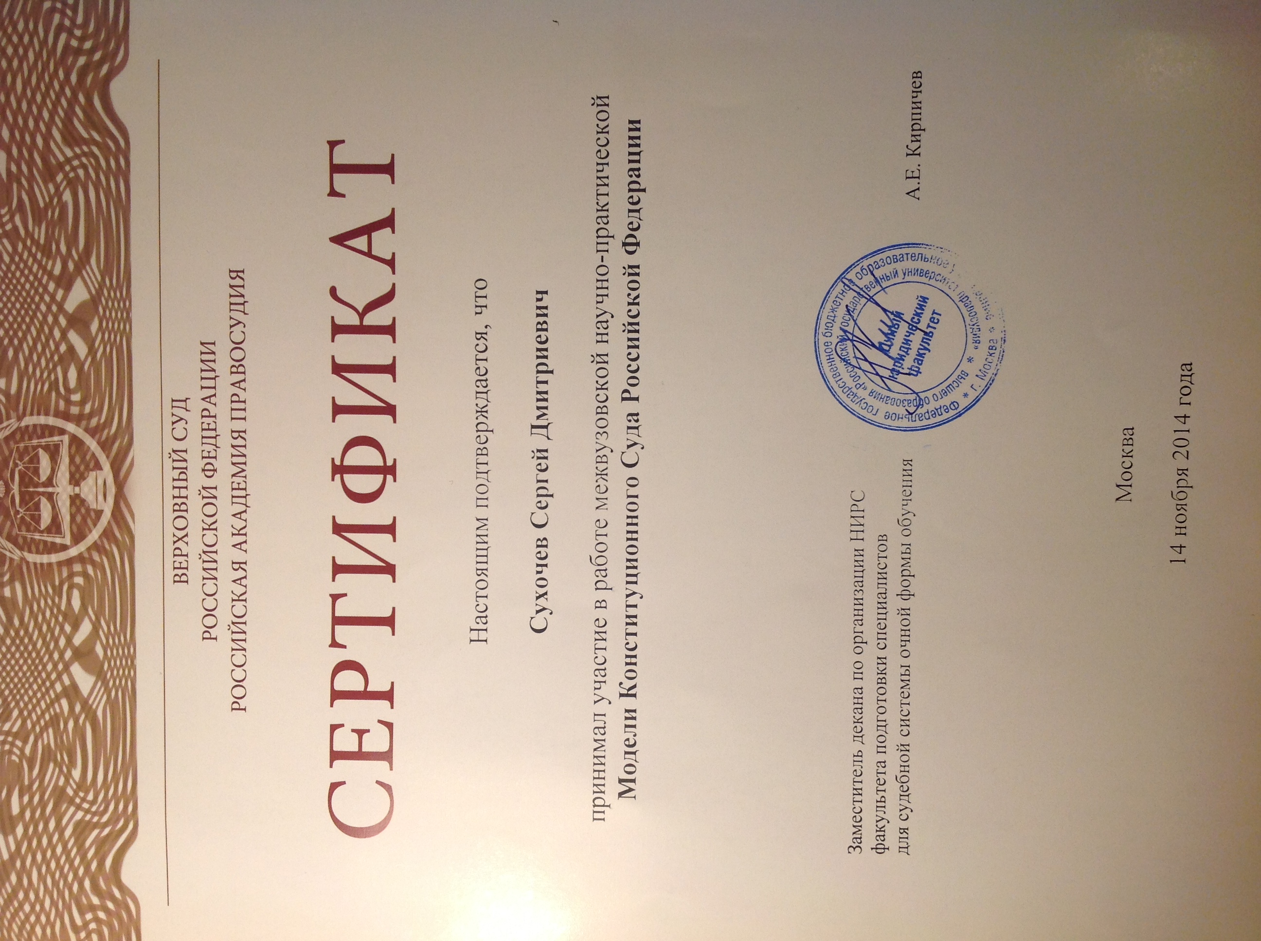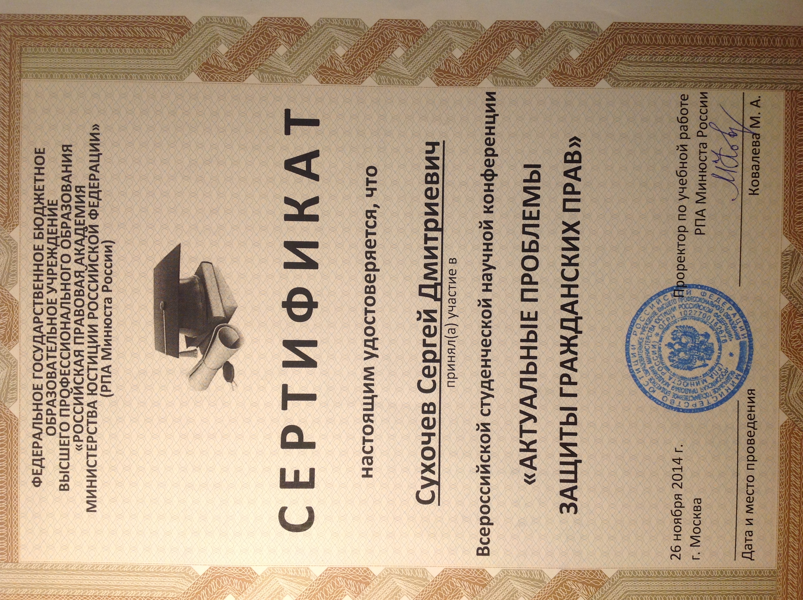 ФГБОУ ВО Российский государственный университет правосудия, факультет - Юридический (Москва, Россия, 2016)