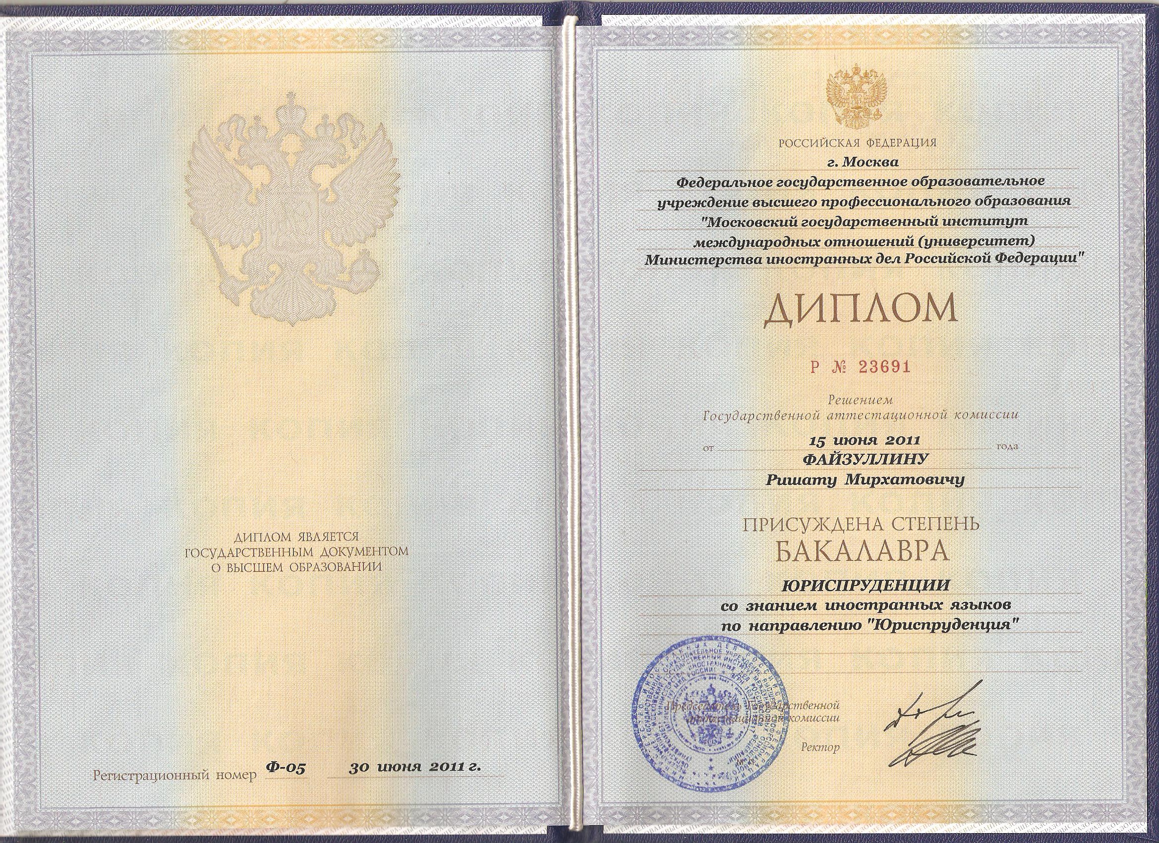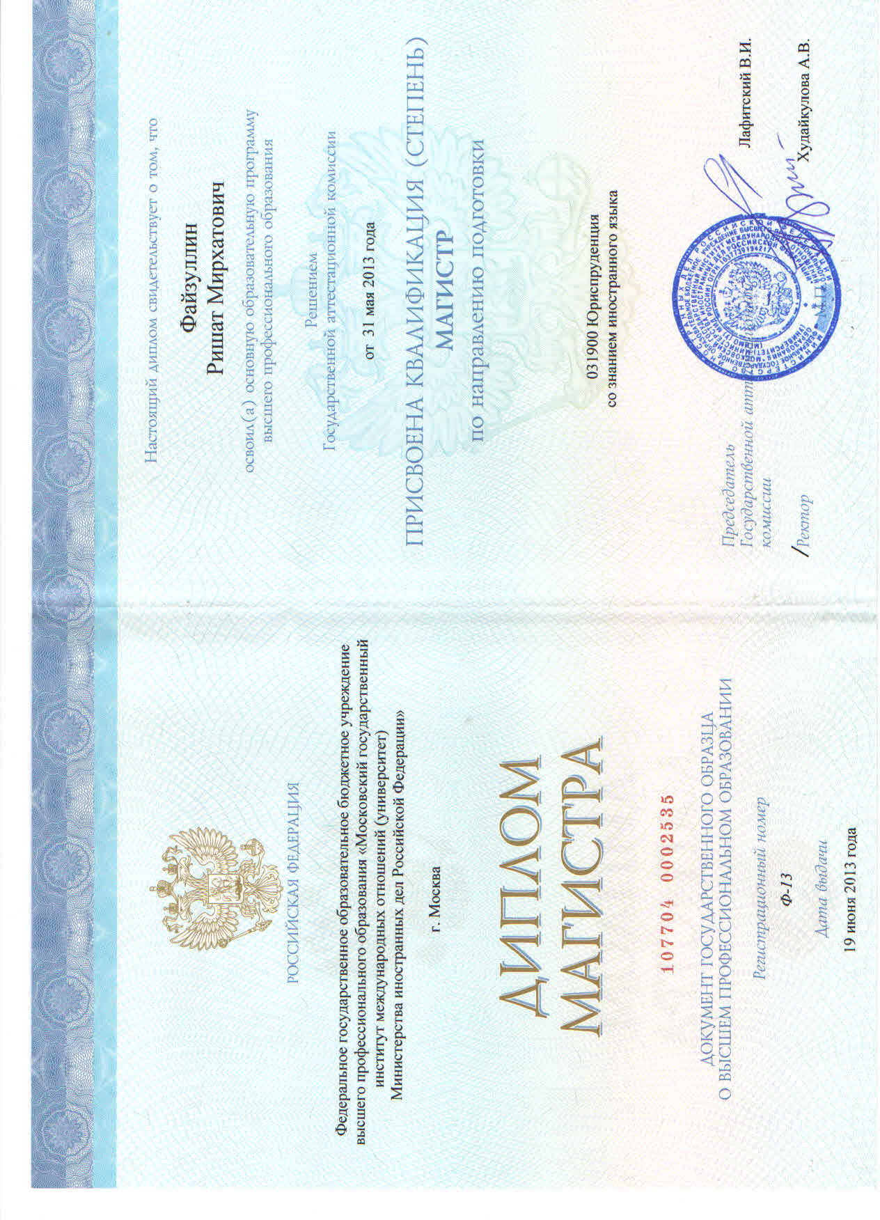 МГИМО (У) МИД РФ, факультет - международно-правовой (Москва, Россия, 2013)