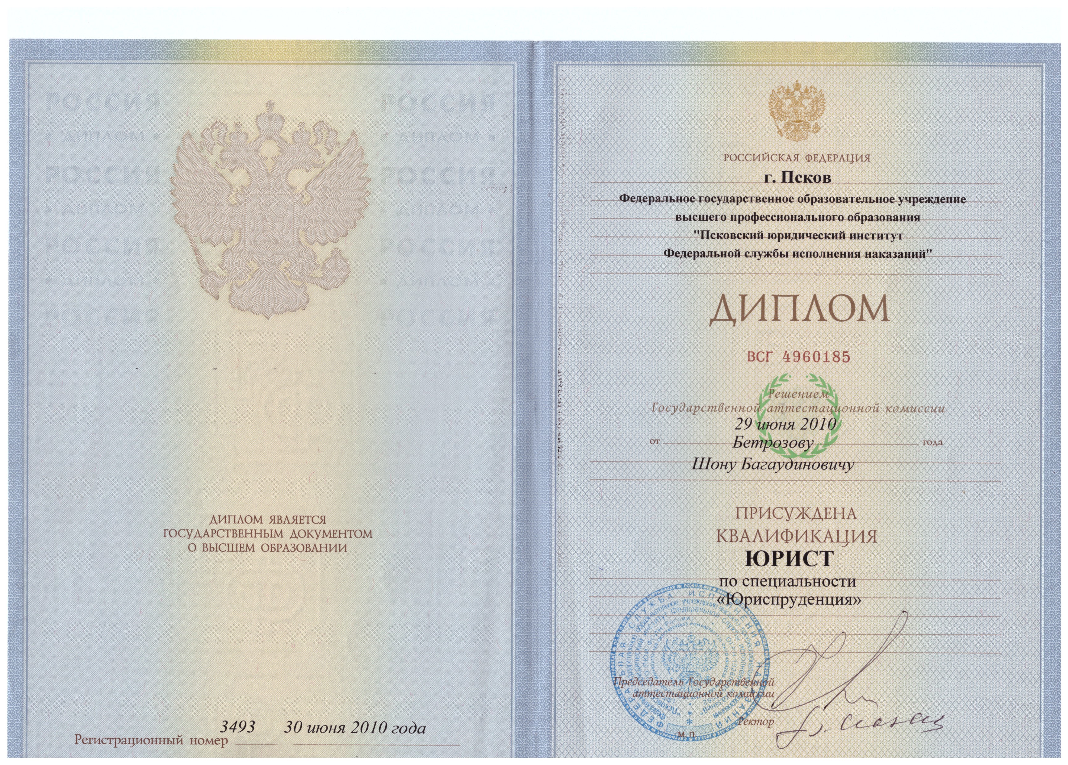 Псковский юридический институт Федеральной службы исполнения наказания России, факультет - Юриспруденция (Псков, Россия, 2010)