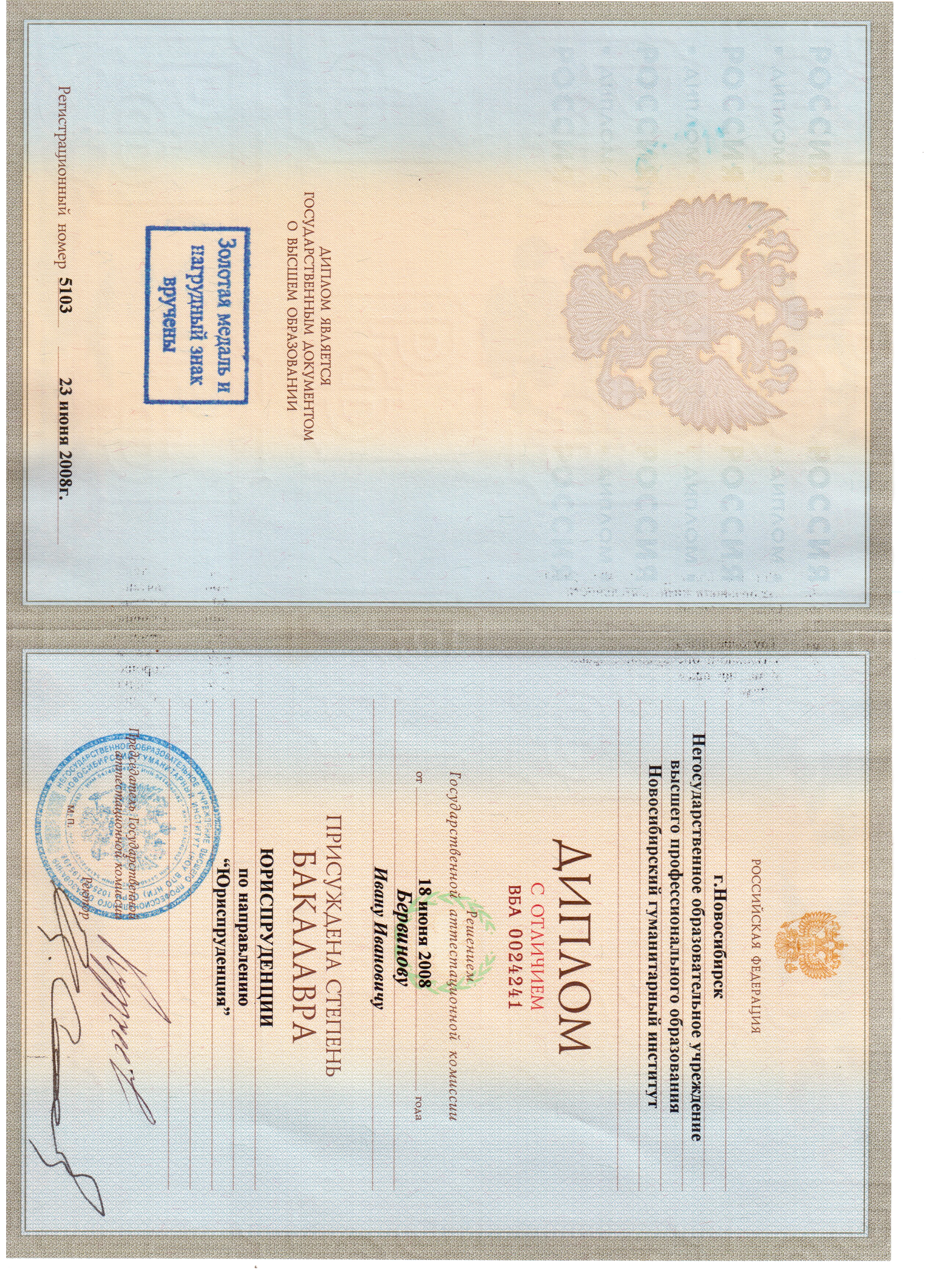 новосибирский гуманитарный институт, факультет - юриспруденция (Новосибирск, Россия, 2008)