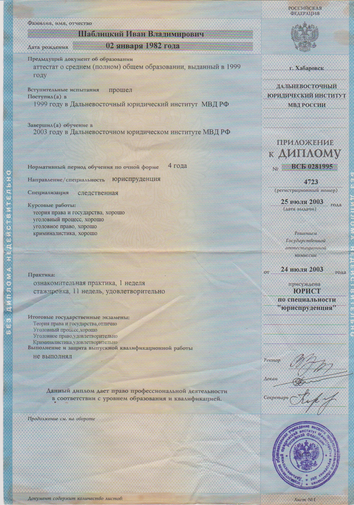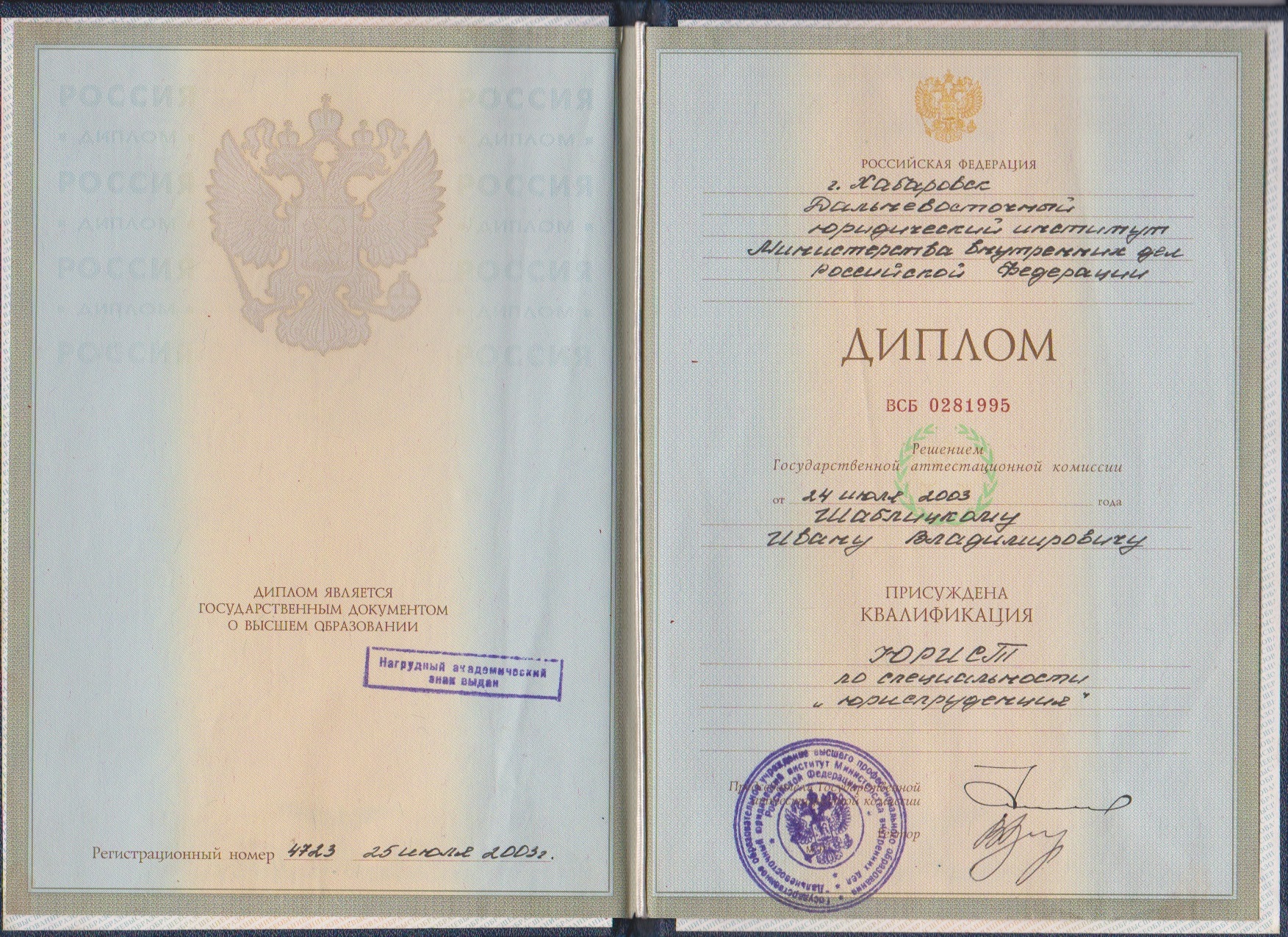дальневосточный юридический институт мвд рф, факультет - Следственный (Хабаровск, Россия, 2003)