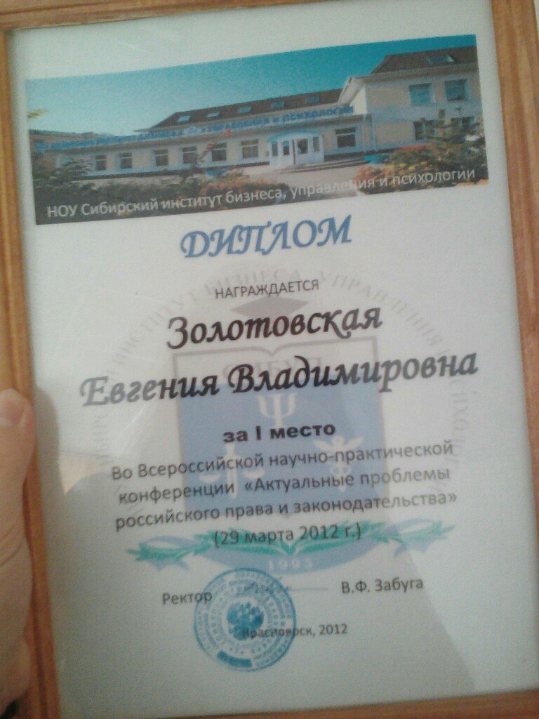 Сибирский Институт Бизнеса и Психологии, факультет - Кафедра трудового и административного права (Красноярск, Россия, 2012)