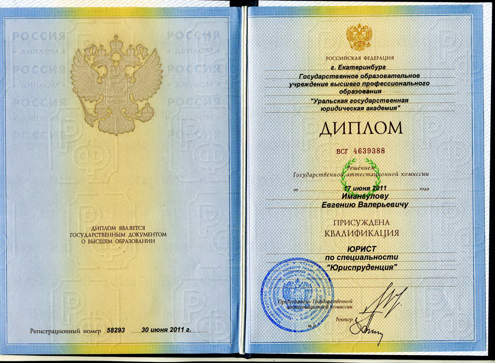 УрГЮА, факультет - Институт Юстиции (Екатеринбург, Россия, 2011)