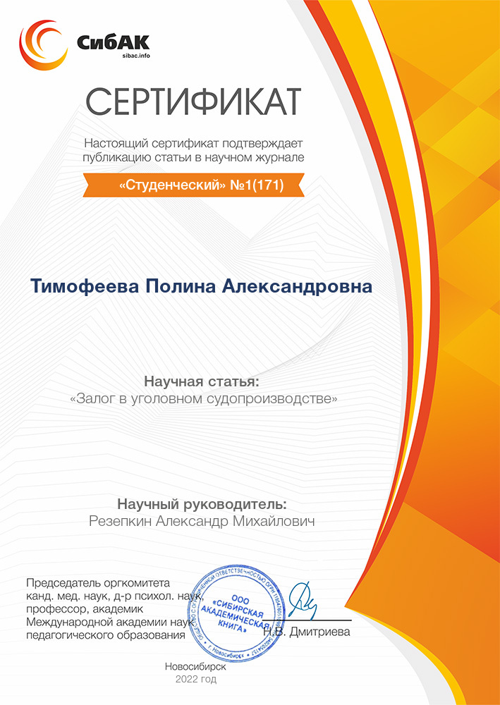 Оренбургский институт (филиал) ФГБОУ ВО "Московский государственный юридический университет имени О.Е.Кутафина (МГЮА)", факультет - Юриспруденция (Оренбург, Россия, 2022)