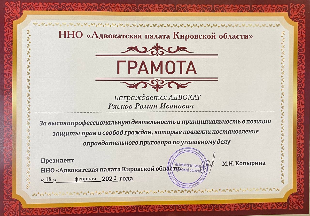 Неоднократно добивался оправдательных приговоров и прекращения уголовных дел по реабилитирующим основаниям по преступлениям, изменения и отмены приговоров в вышестоящих инстанциях по ст.111, ст.145.1, ст. 171.3, ст.159, ст.159.2, ст.201, ст.260, ст.285 УК РФ
