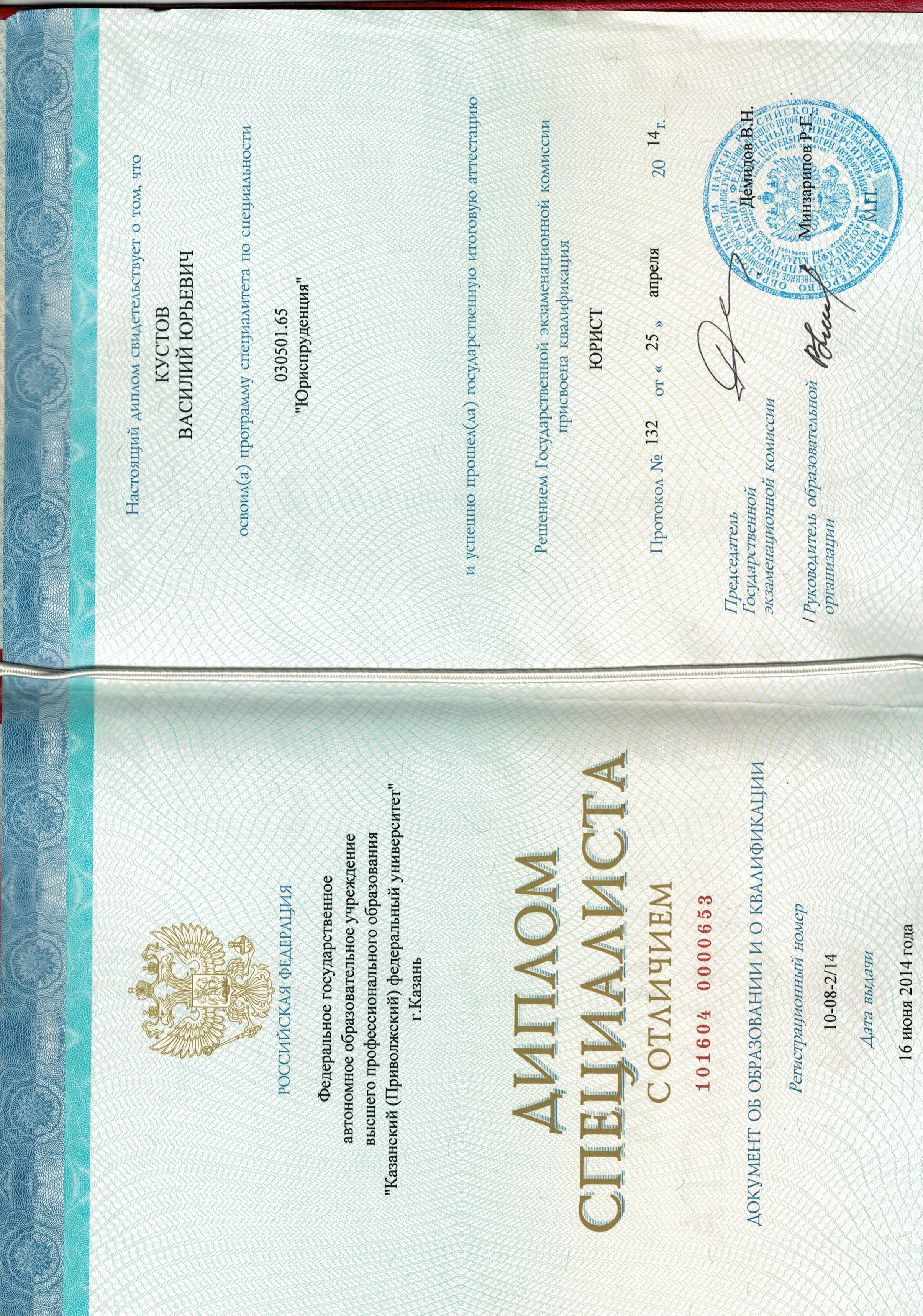 Казанский (Приволжский) федеральный университет, факультет - Юридический (Казань, Россия, 2014)