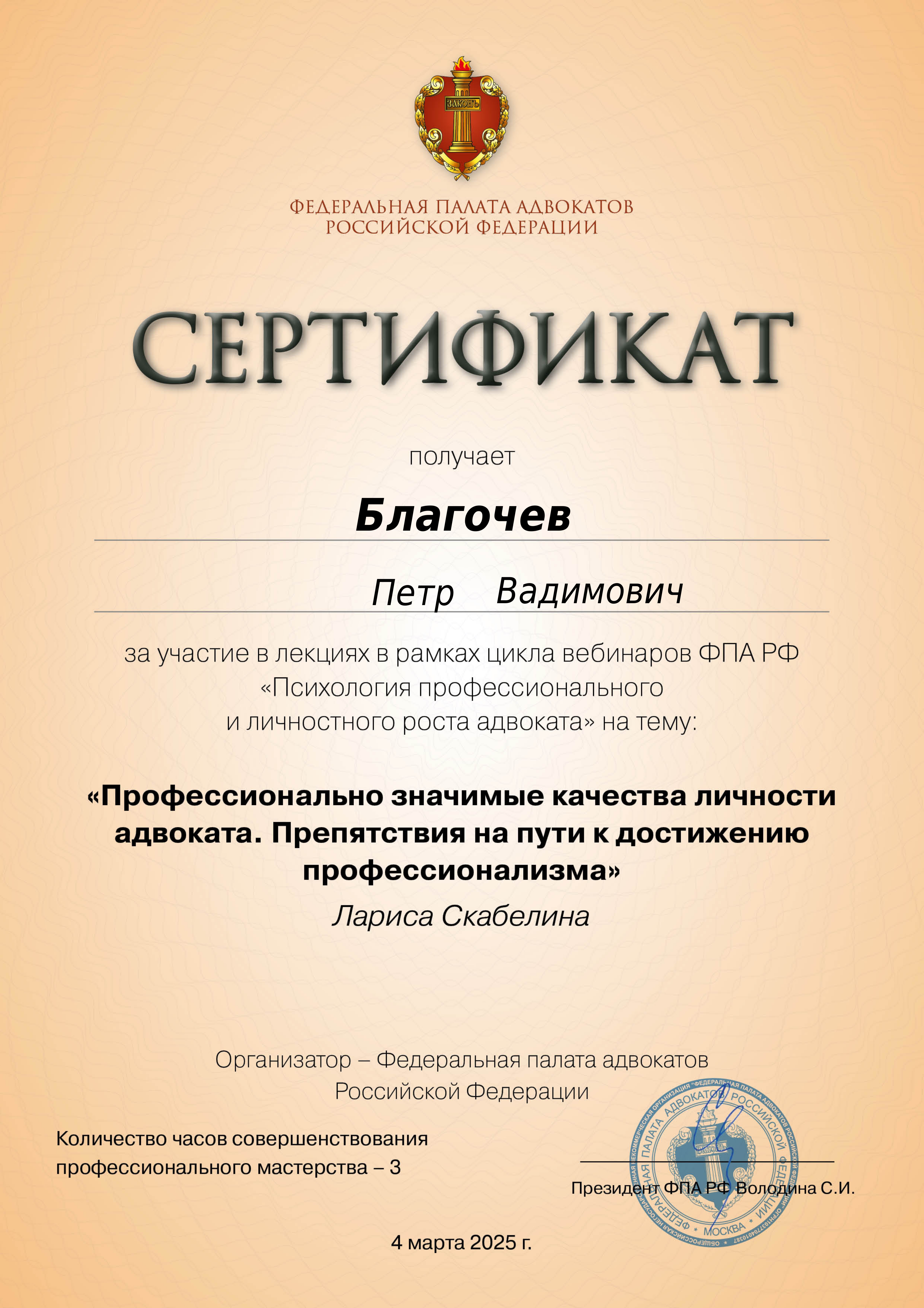 Адвокат - Адвокат Благочев Пётр Вадимович. 20 лет стажа