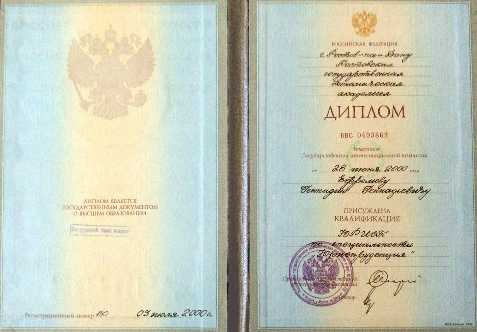 РИНХ, факультет - юридический (Ростов-на-Дону, Россия, 2000)