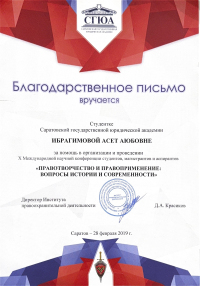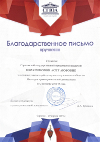 Саратовская государственная юридическая академия, факультет - Институт правоохранительной деятельности (Саратов, Россия, 2020)