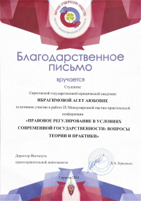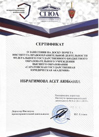 Саратовская государственная юридическая академия, факультет - Институт магистратуры (Саратов, Россия, 2022)