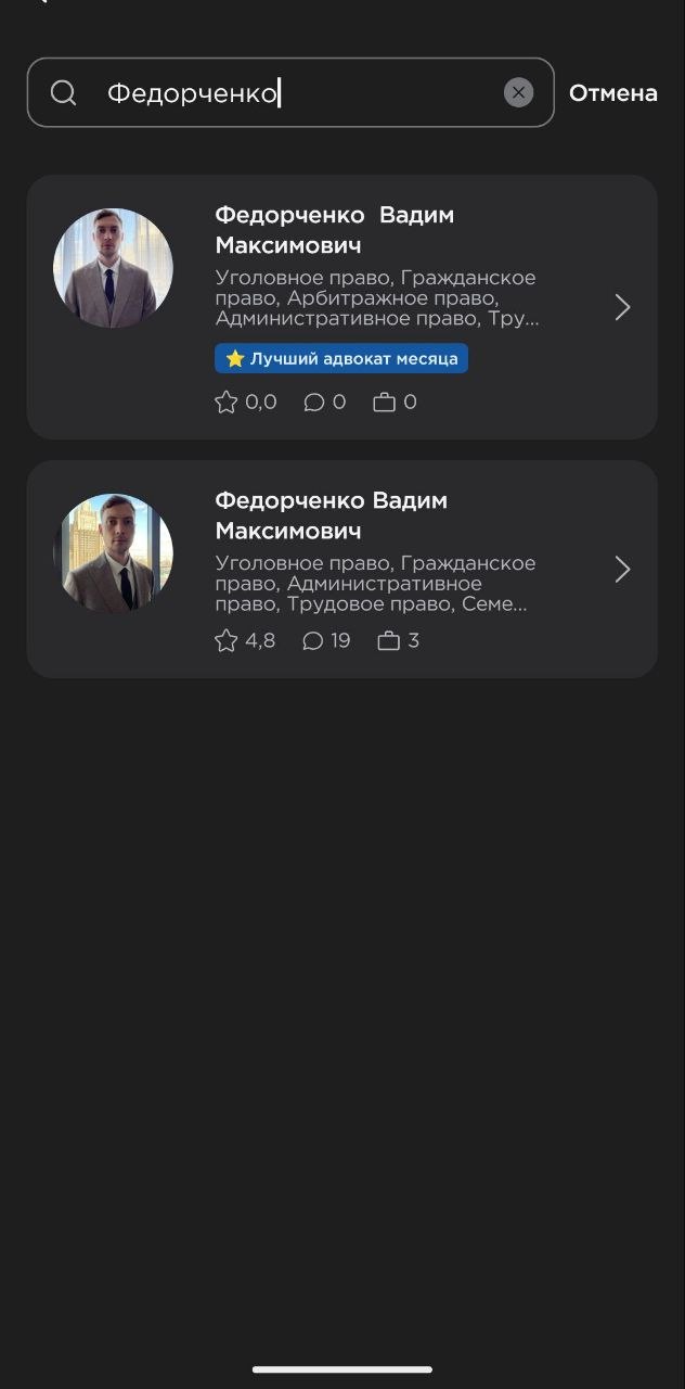 Меня зовут Вадим Максимович Федорченко. Я — юрист, в настоящий момент готовлюсь к сдаче экзамена на статус адвоката в Адвокатской Палате Московской области.