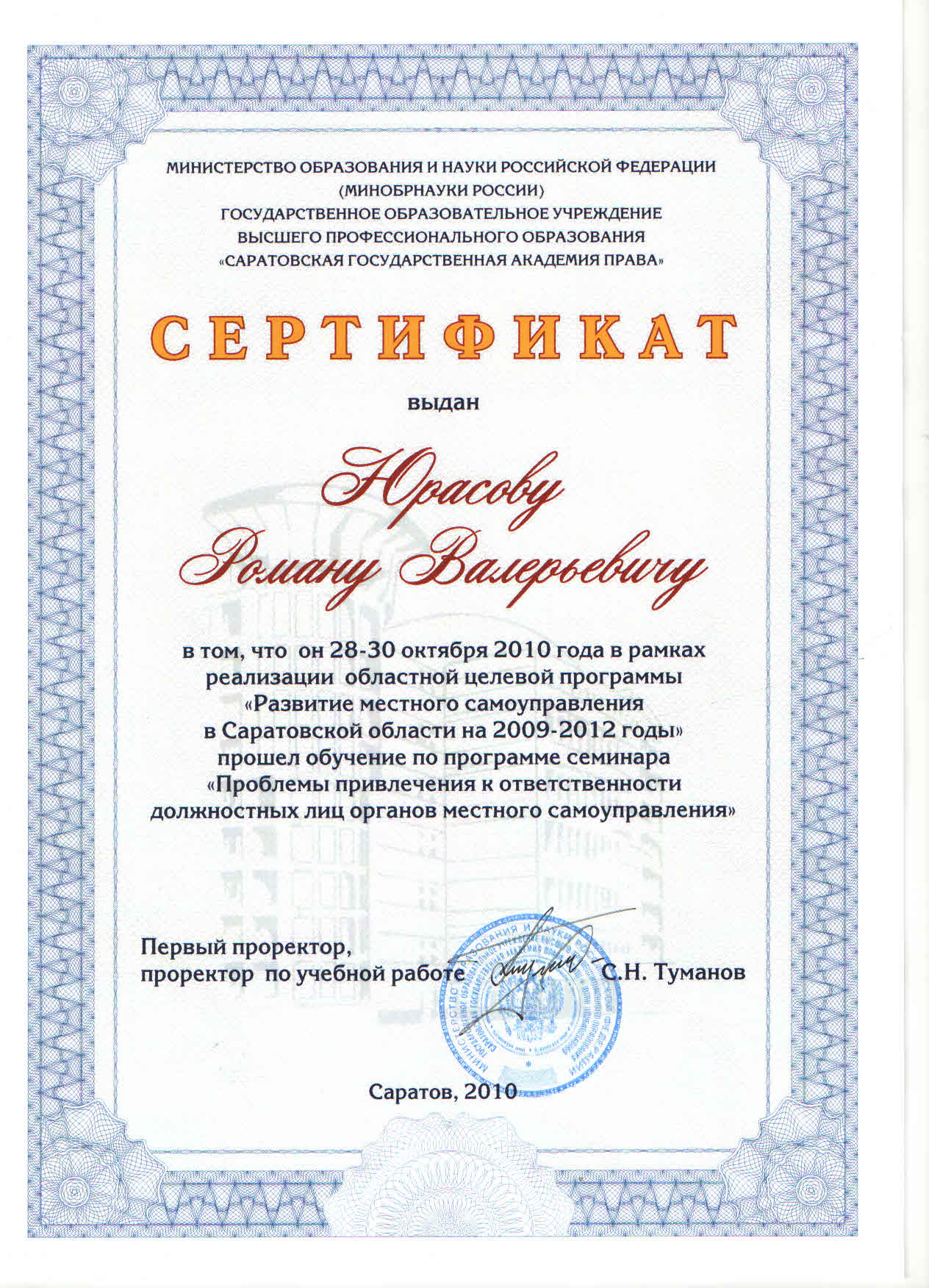 Саратовский юридический институт МВД России, факультет - Специальный (Саратов, Россия, 2008)