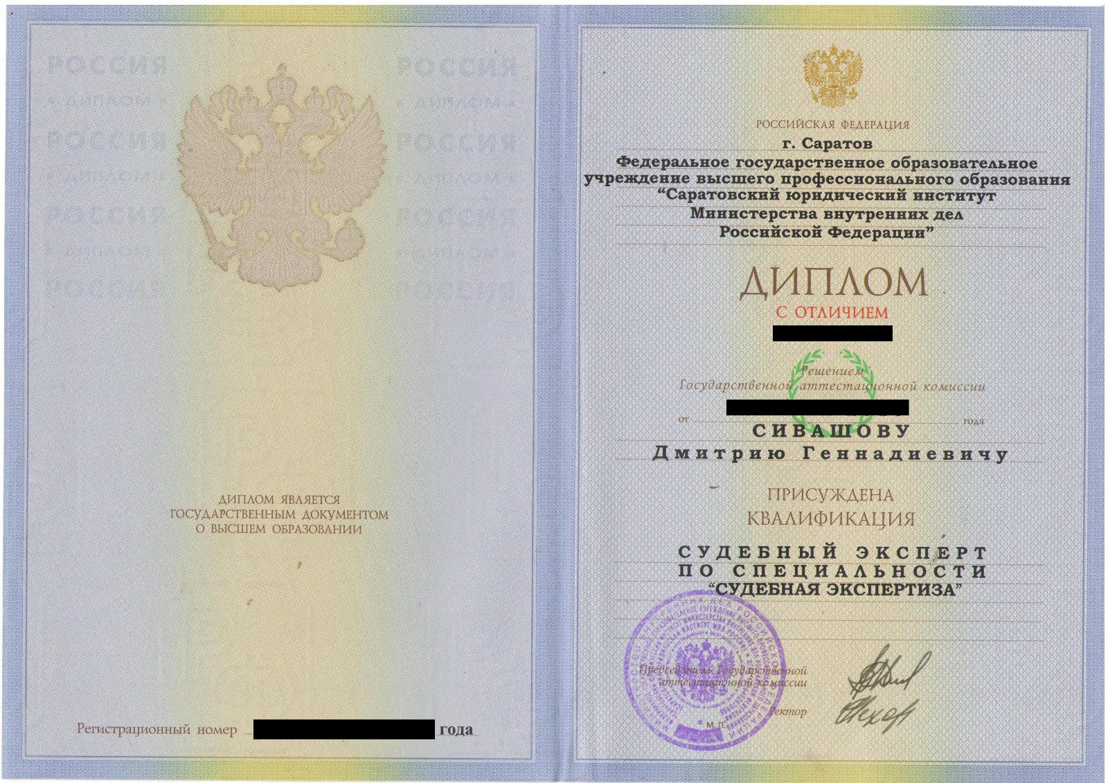 Саратовский юридический институт МВД РФ, факультет - Судебная экспертиза (Саратов, Россия, 2010)