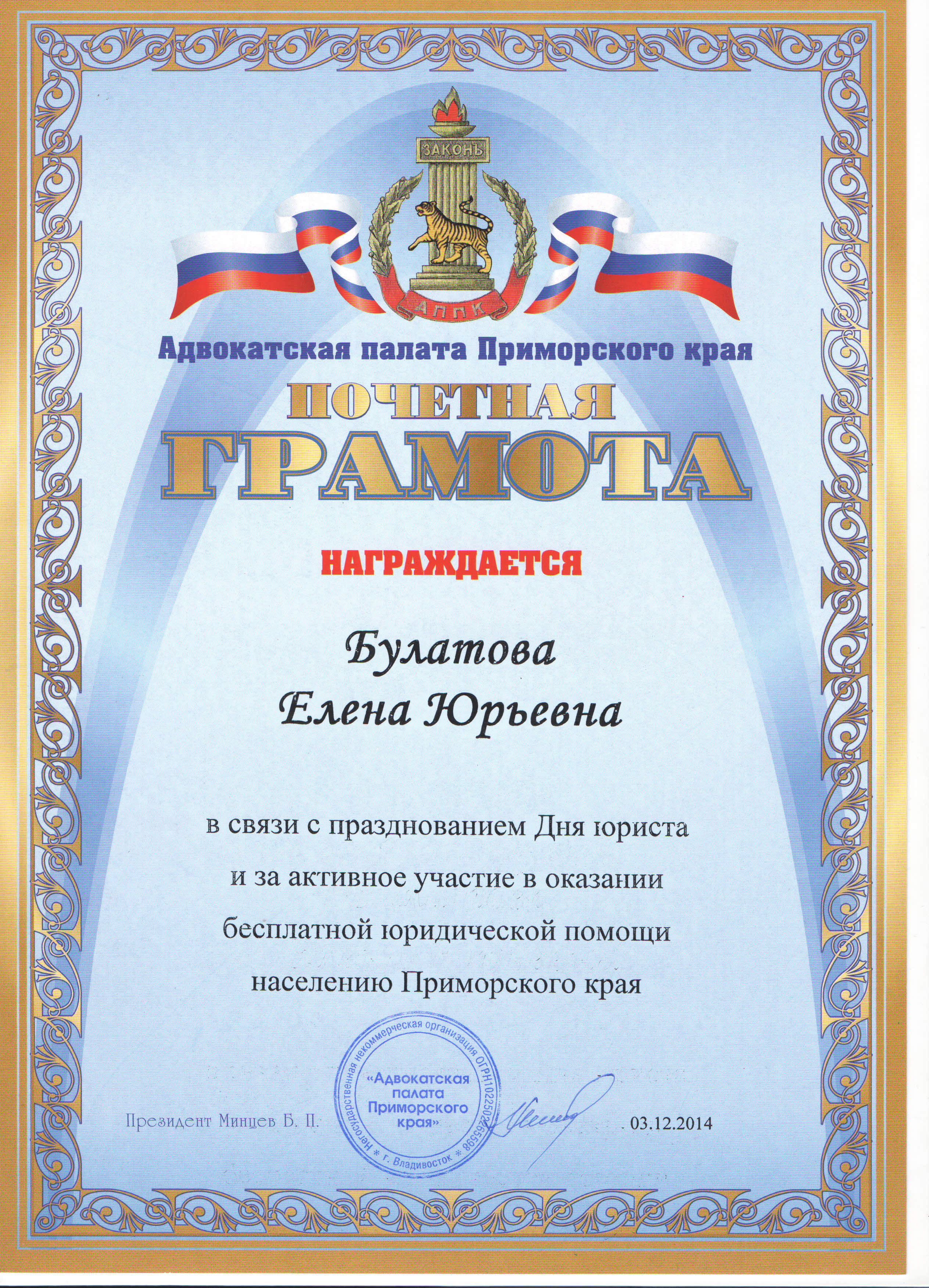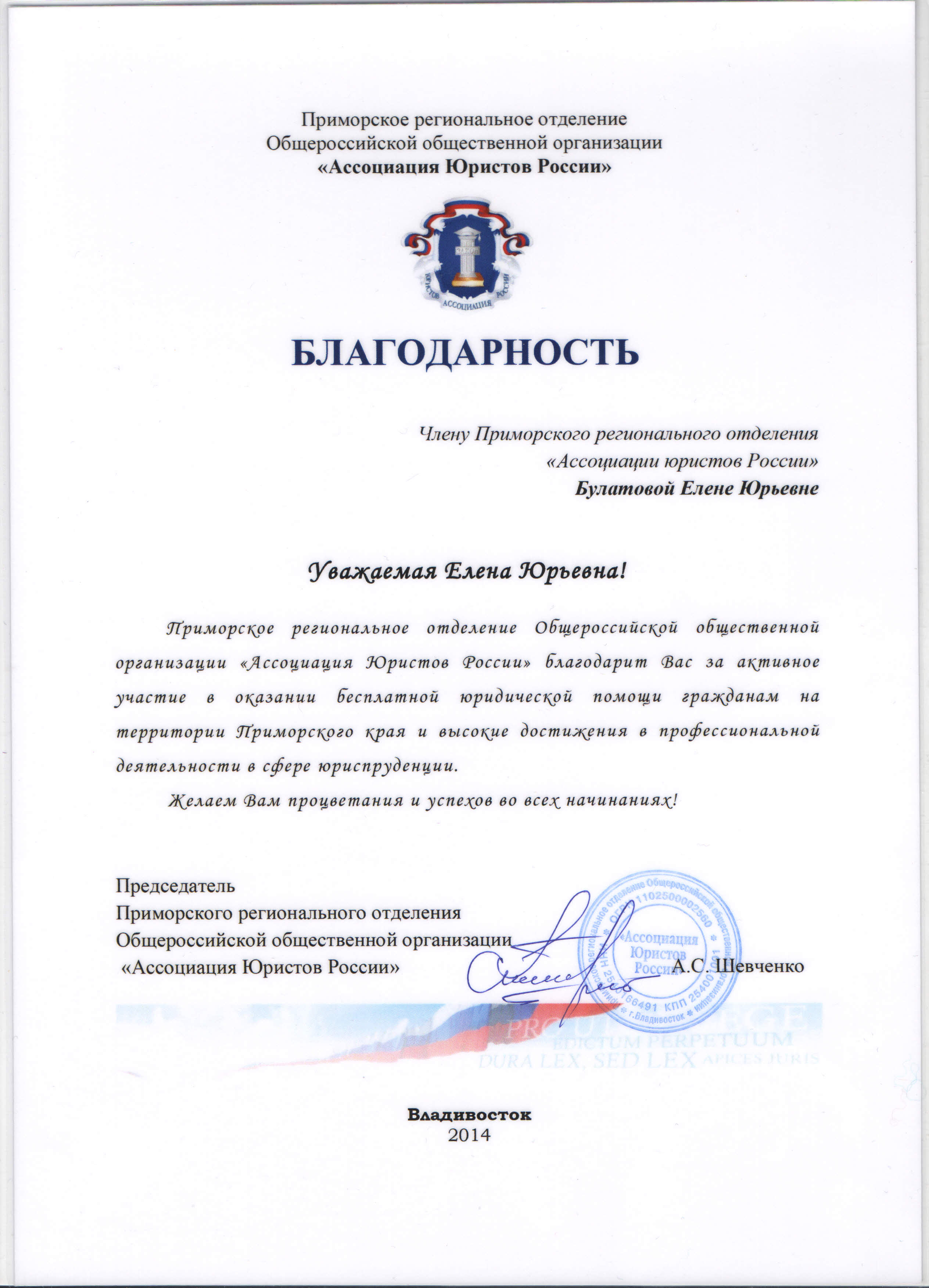 Адвокат - Тихоокеанская коллегия адвокатов Приморского края. 5 лет стажа