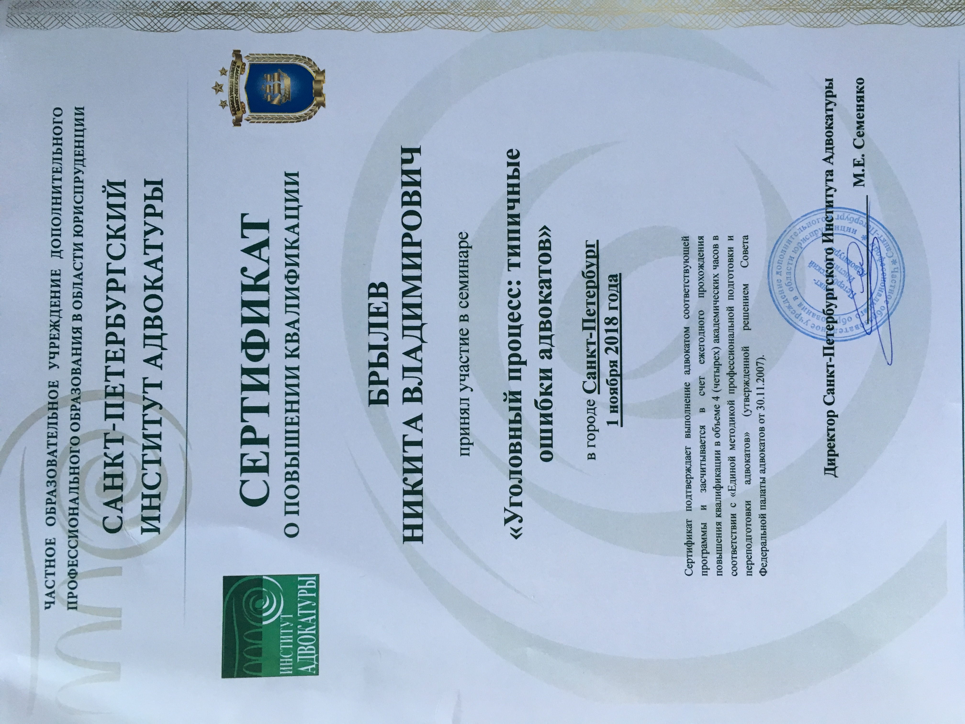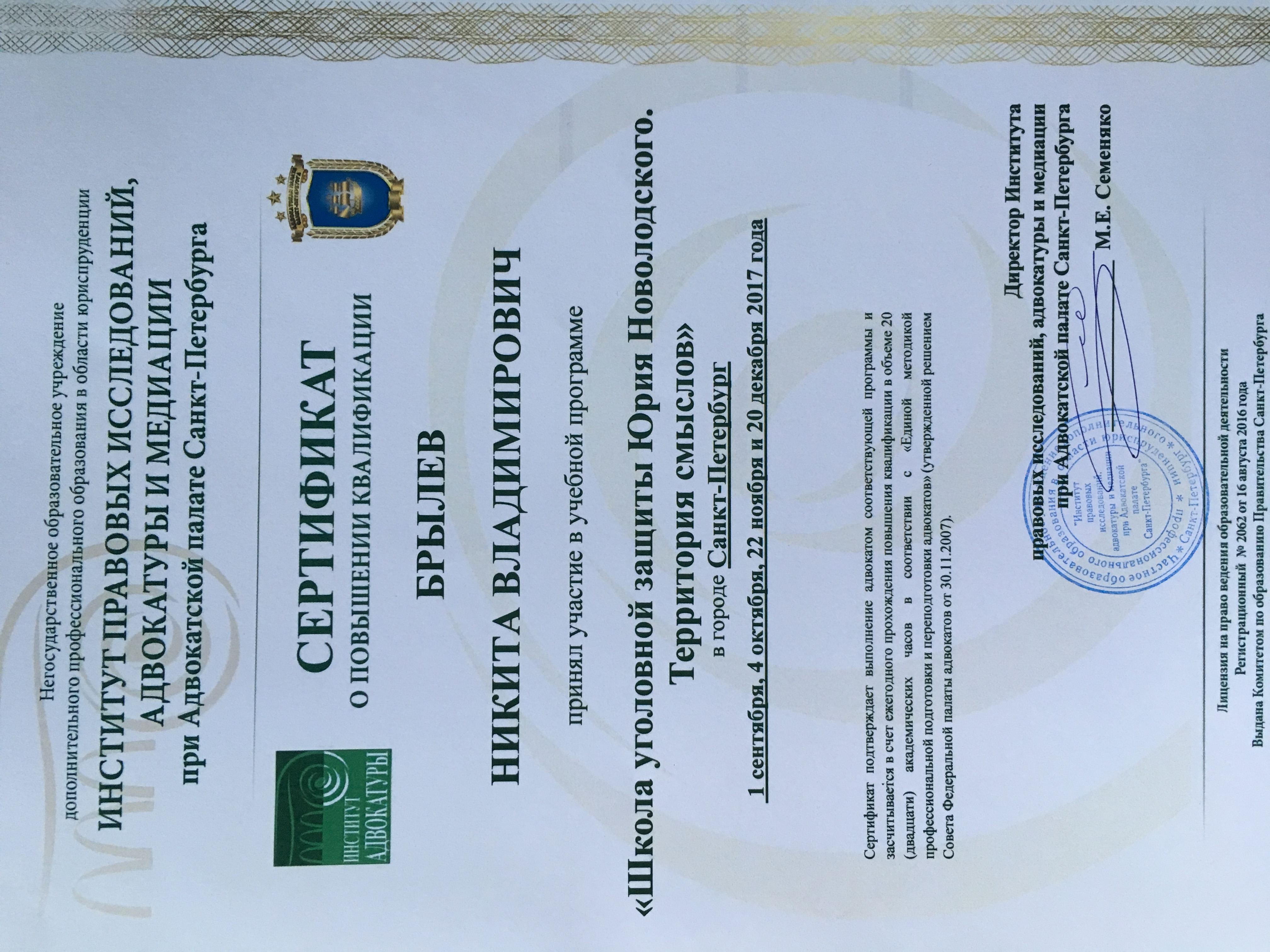 Санкт-Петербургская юридическя академия, факультет - гражданское право (Санкт-Петербург, Россия, 2011)