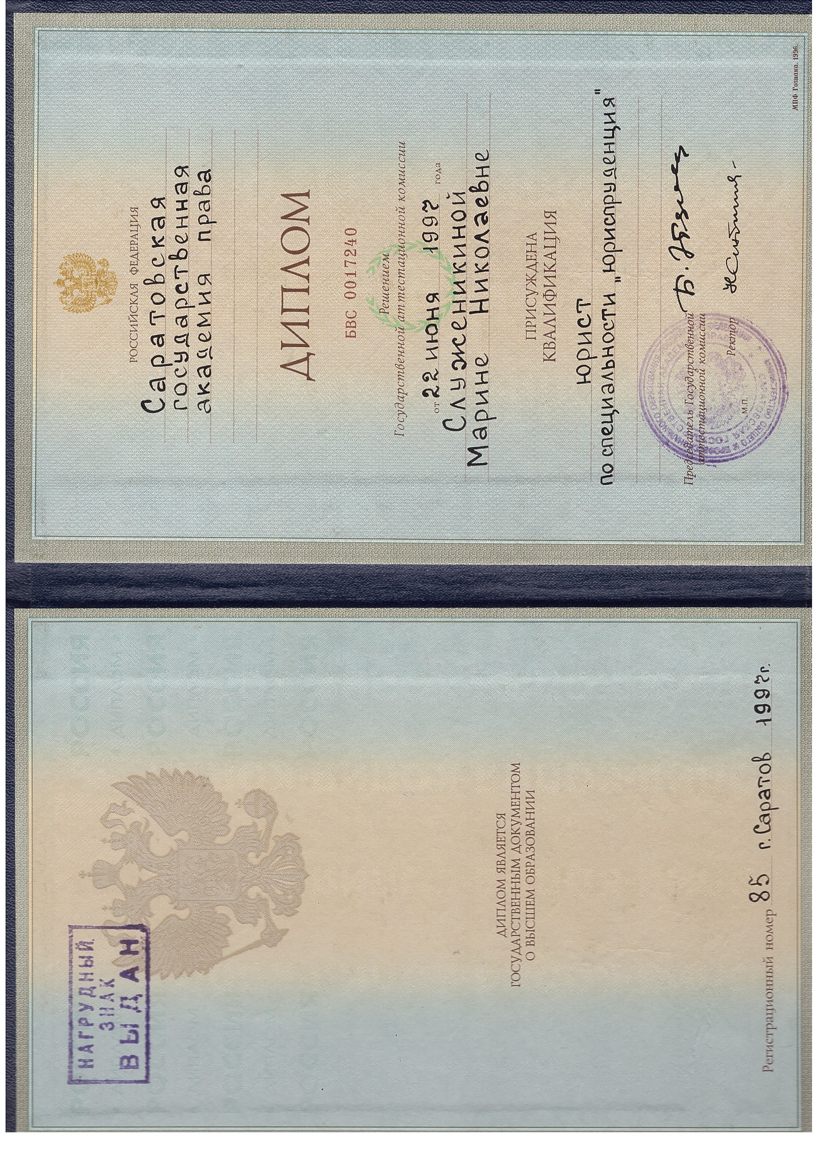 Саратовская государственная академия права, факультет - юридический (Саратов, Россия, 1997)