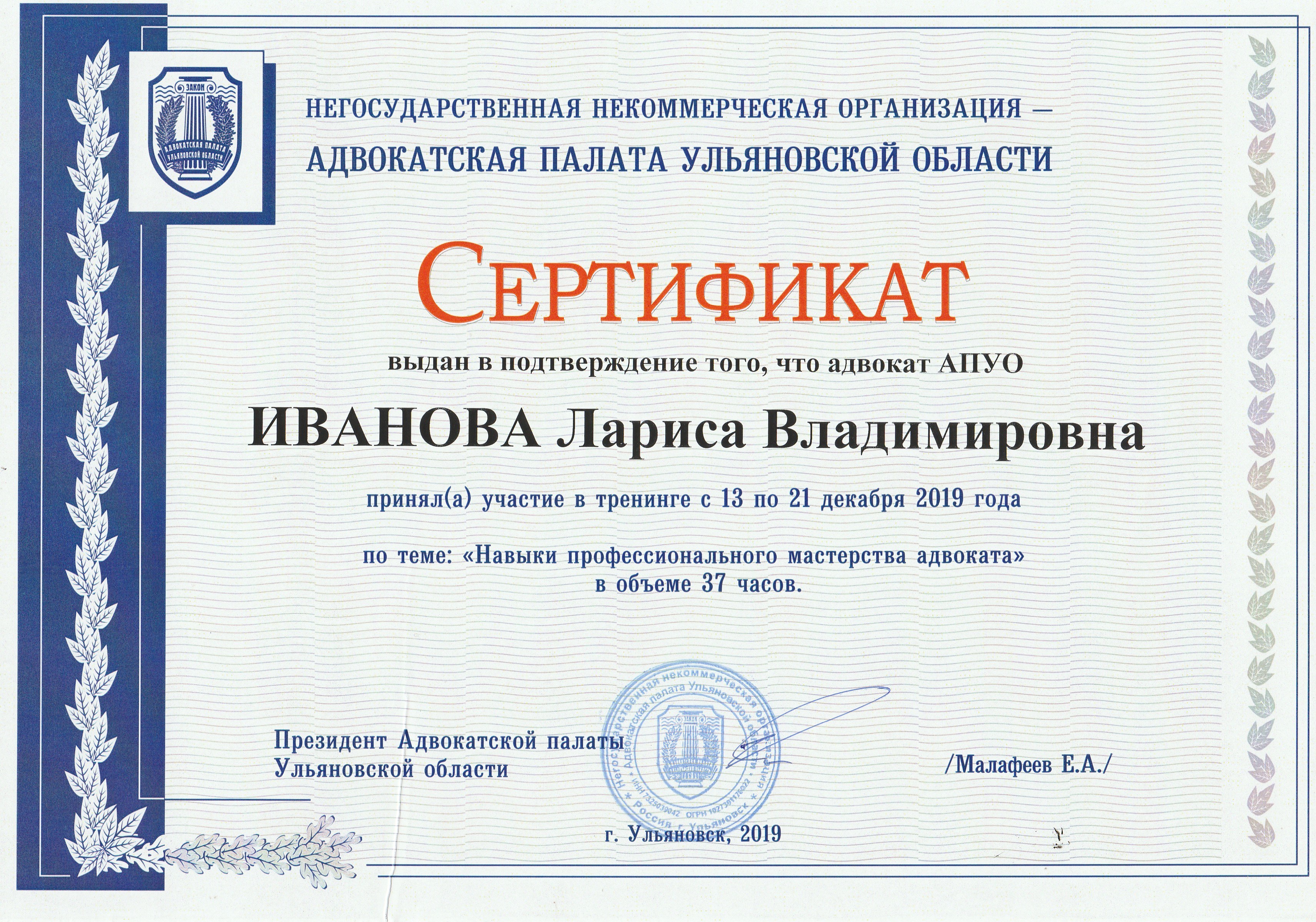 Адвокат - Ульяновская областная коллегия адвокатов Филиал № 1 по Засвияжскому району города Ульяновска. 9 лет стажа